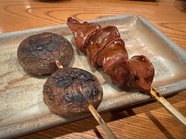 ただ、椎茸は水の使い方が弱くあまり感心しない味になっていました。あの渋谷の葉隠のまるでステーキを食べているような弾力性は感じません。またつくねも今一つのように思えます。食感の問題ですが。