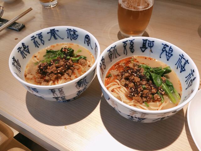 坦々麺は、1人前を2つにシェアして