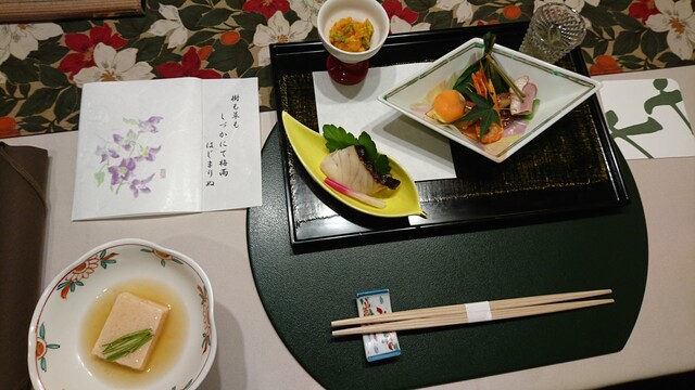 ひとつひとつ丹精込めて作られている感じが伝わる上品な会席料理で、キリッと冷えた「あわら温泉女将の会」が手掛ける純米吟醸酒「女将」が更に引き立ててくれました。