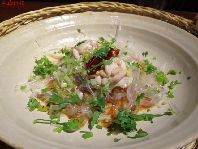 ③マンボウの腸の冷製・怪味ソース掛け・・・怪味ソースはピリッとした辛さの中に