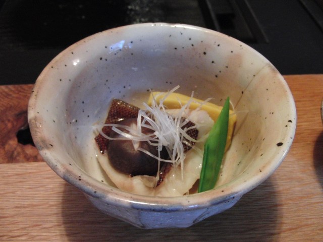海老の上に乗っているのは梅です。梅の酸味が出汁にほんのりと感じられサッパリとしています。