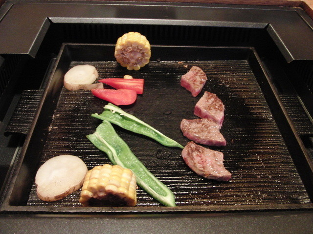 予約名を告げると真中に鉄板がセットされたテーブルに案内されます。