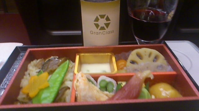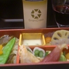 写真は和軽食(折詰)、奥はフリーの赤ワインです。