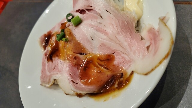こちらも白くて縁の広い器に盛られており、みずみずしくてテカりのあるお肉がご飯の上を艶めかしく覆っているのであります。そんな肉にはタレと小ネギが適度に。そして縁にはマヨネーズがちょこんとの構成であります。