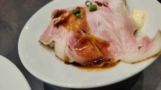 そしてお次は気になる雲丹バターであります。少しすくい取って麺と共にツルツルといたしますと、確かに雲丹で確かにバターなのであります。洋風なまろやかさと旨味が追加されたお皿の世界はますます濃厚になっていくのでありますが、どうしてだか全然クドく無くてますます麺の美味しさが際立つ組合せなのでありました。