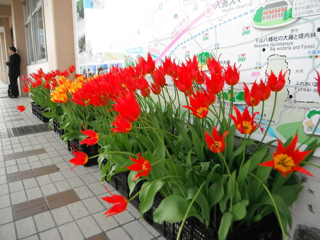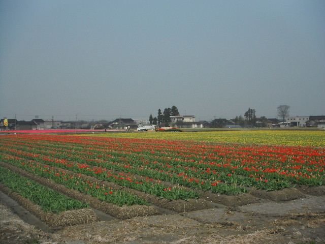 晴天なんだけど,風強し。チューリップもまだ早い。