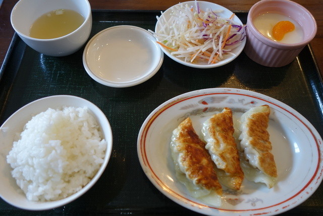 定食は、まずは焼き餃子とごはん、スープなどが先にきました。