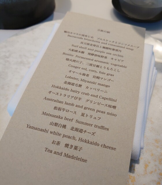 もう秋なのねと感じながら実際に食べていくと、国産を中心とした季節の食材や調味料をふんだんに用いながら、調理は和食とフレンチのいいとこどり。