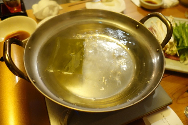 今日のメインです。大きめのブリをしゃぶしゃぶし、野菜を巻いて食べます