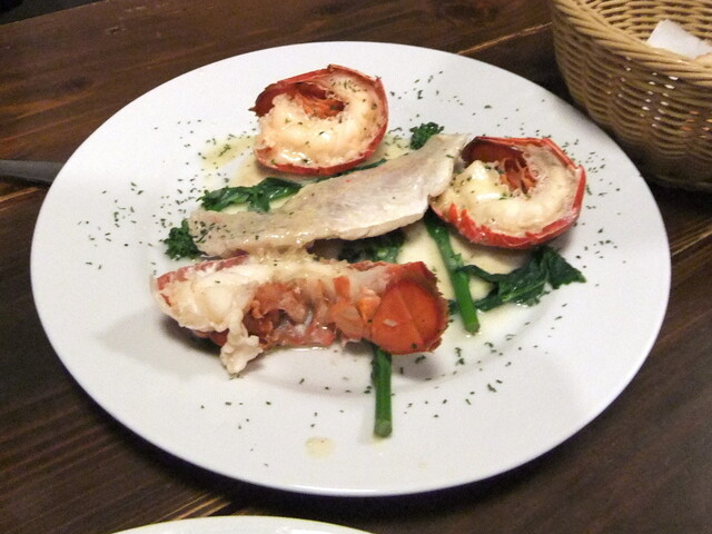 コクレ(雛鳥)1羽丸ごとロティ、活オマールエビ1尾丸ごとロースト