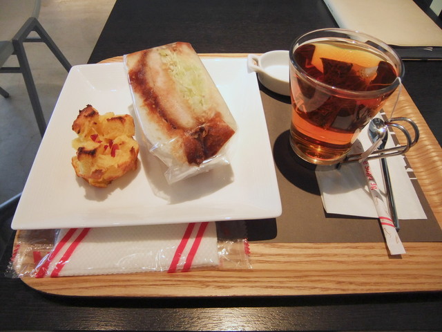 中身は「ほくほくのポテトサラダにフライドオニオン」。札にはちゃんとそう書いてましたが、ジャーマンって言うネーミングから勝手にコショウやベーコン系が効いたほくほくベイクドポテトをイメージしたので、求めた味とは違い…カリカリのフランスパンで美味しいけど、味イメージ的にはぬるいポテトサラダサンド。