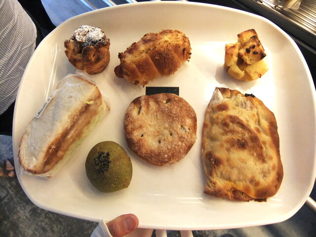 とりあえずそれを1本キープしてもらい、色んな種類のパンが並ぶ棚を見ると、どれもこれも美味しそうで食パンだけで我慢できるはずもなく・・・