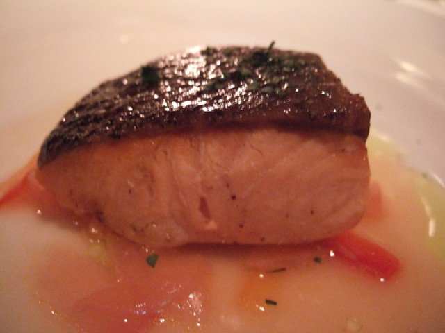 魚料理「サーモンのソテー 野菜のマリネ添え」