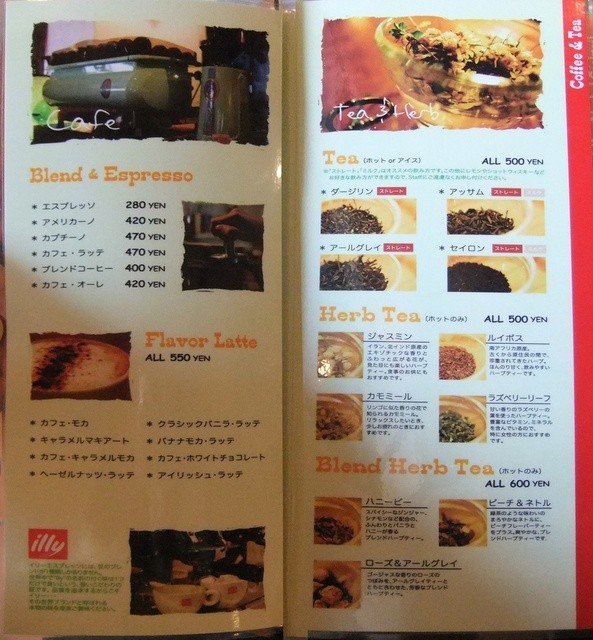 カフェ&ティーメニュー