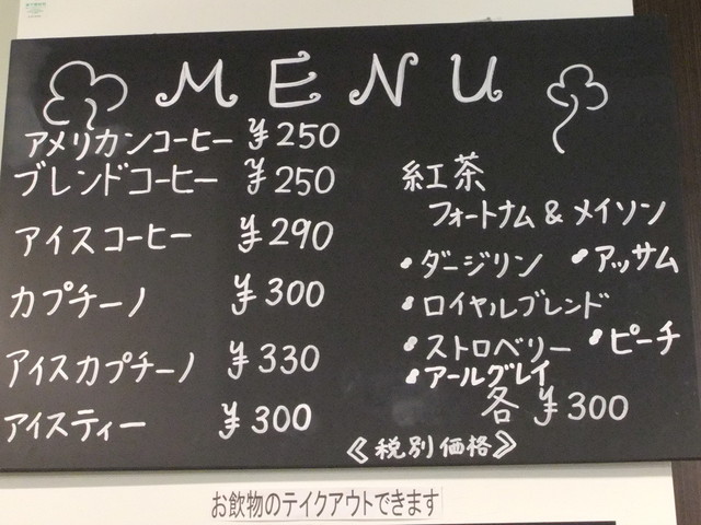 ドリンクは、コーヒー262円、フレイバーコーヒーや各種アレンジラテが315円~420円、フォートナム&メイソンの紅茶が6種各315円、その他ジュースや抹茶ミルクやキャラメルチョコミルクなどなど、高くても420円というお手頃価格でかなり充実しています!