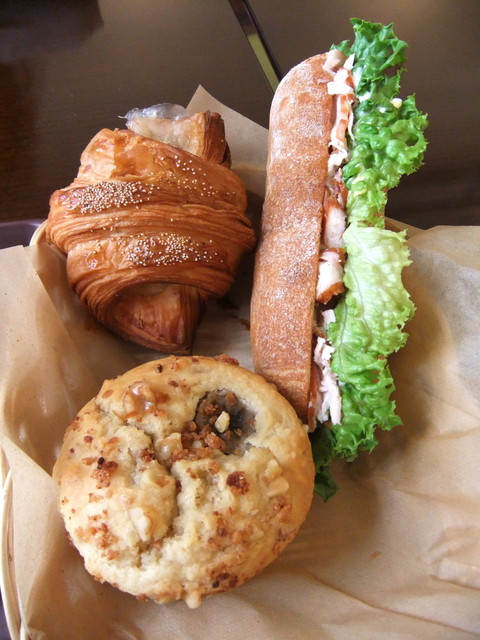 もちクロワッサン、スモークチキンのカスクート、ウォールナッツバナナマフィン