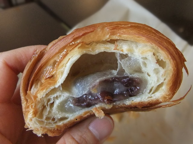 クロワッサンの中に、求肥で包まれた有機小倉あん。