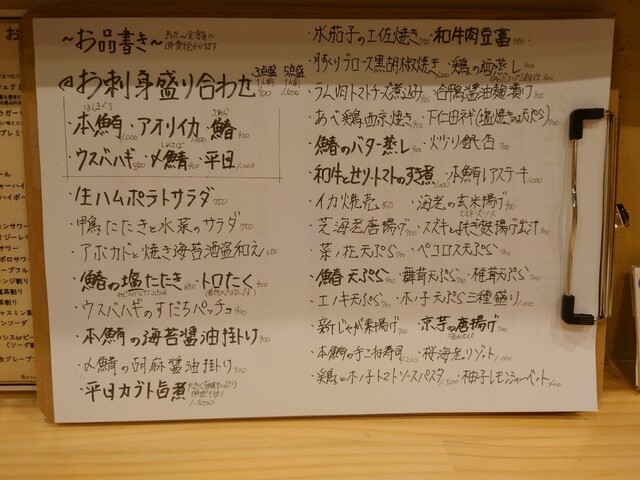 メニューの感じだと、お魚多め、お肉もそれなり、野菜物や〆物系もあります。