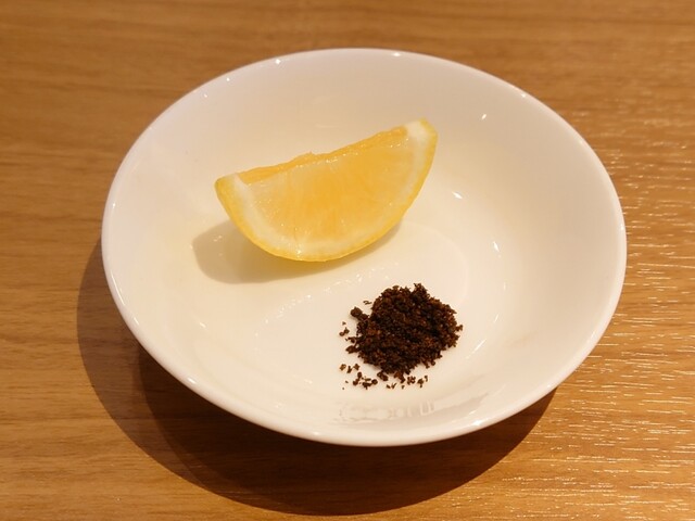 途中から、味変用のレモンと黒七味を入れることにより、味がキリッと引き締まる。