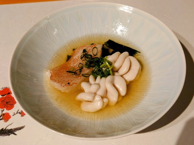 このキンキの旨味が出た出汁で白子を煮るという贅沢な一品。