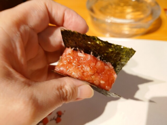 本鮪ねぎとろ(海苔の風味がよく鮪とのマリアージュが良い)
