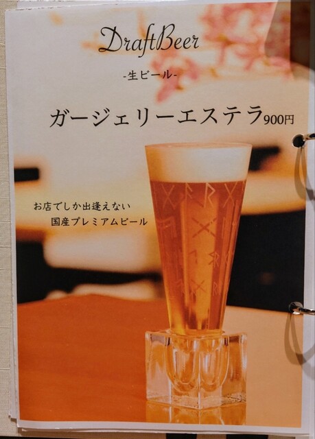 ドリンクは、ビールがガージェリーエステラというものがオススメとのことですが、他の銘柄もあります。