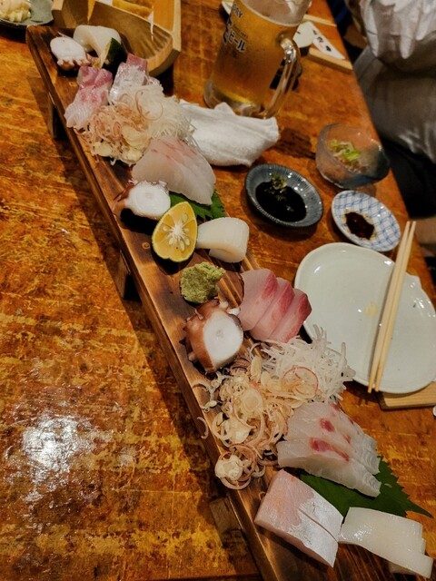 お刺身も新鮮!また、もつのホルモン焼きなんて美味いんだ!