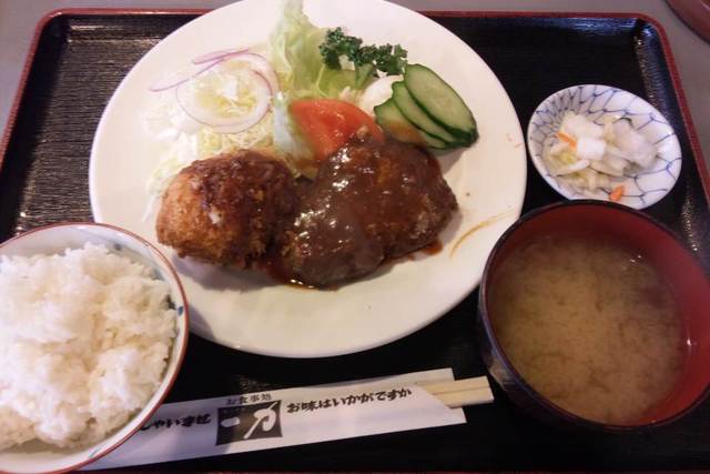 ハンバーグとかにクリームコロッケ取り合わせ定食・930円にしました。