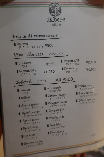 ドリンクは最初だけモレッティ、