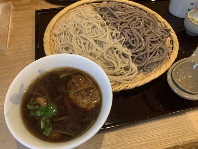 さて、締めの蕎麦は…鴨せいろ二色の大盛り