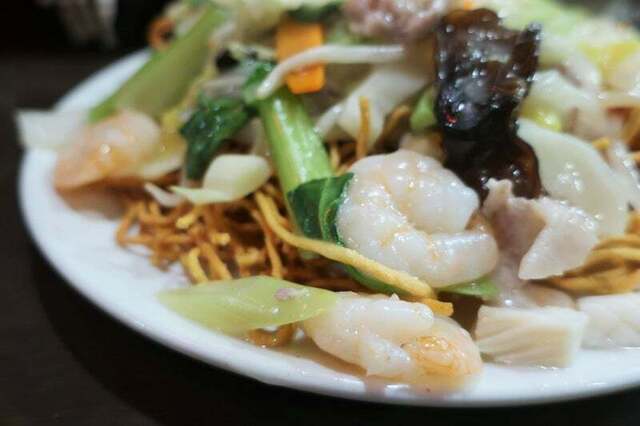 バリバリの揚麺、餡で徐々にやわらかくなるぐらいが丁度良い。