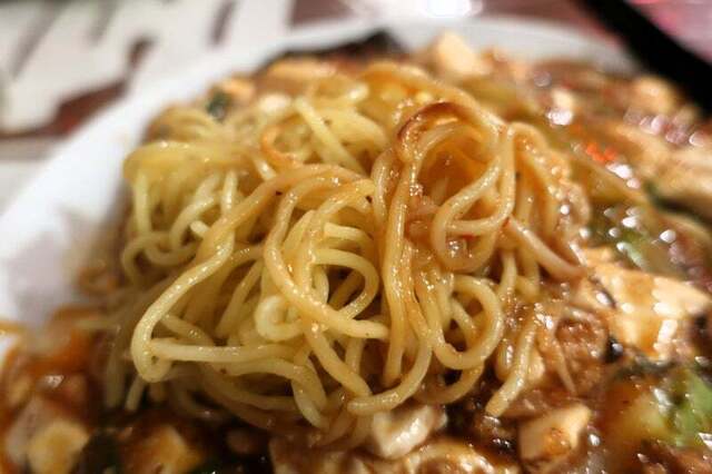 あんかけタイプのキノコ入り麻婆焼きそば。