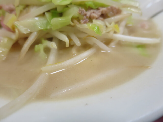 麺は、細麺やちゃんぽんの麺とはまた違う平打ち系の太麺。