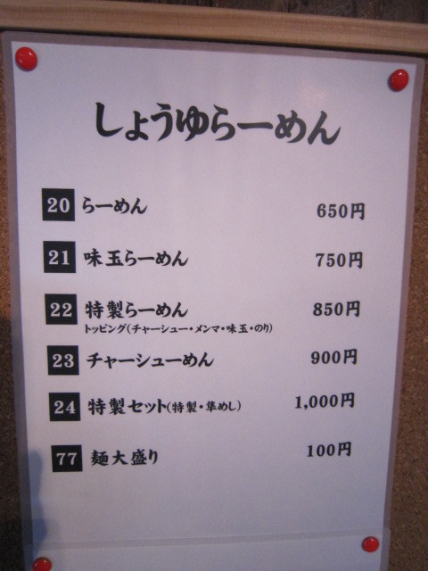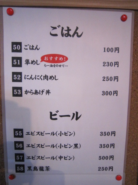 券売機は、このメニュー表の番号を打ち込むタイプ。
