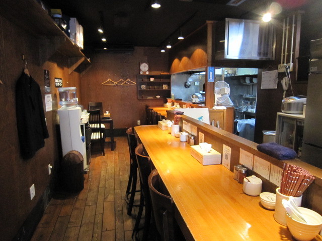 カウンターが8席ぐらいと(10席かなぁ?)、奥に2掛けのテーブルが一つ。