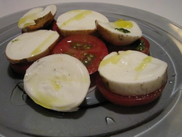 カプレーゼ、ジェノベーゼソースがけ