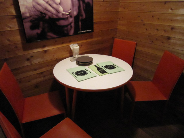 前回と同じ奥のテーブル席で~