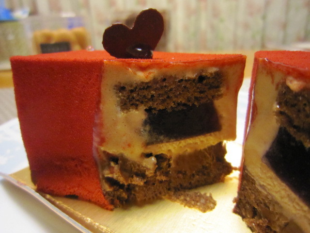 中には、ミルクチョコレートムースとパッションムース。