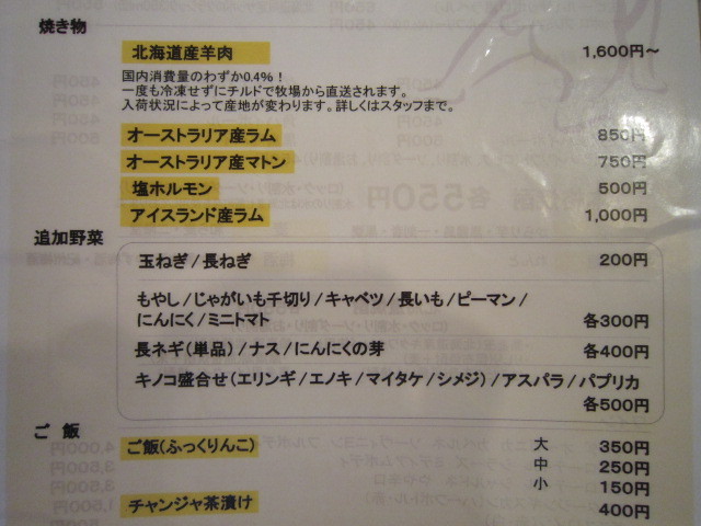 ジンギスカン食べるの、渋谷の『ゆきだるま』以来1年ちょっとぶり。