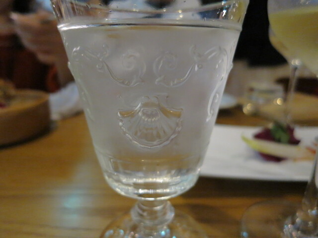 お冷のグラスに貝殻模様。