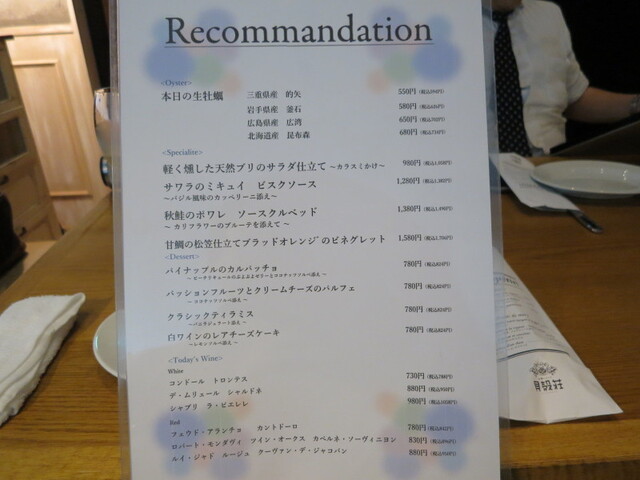 メニューの一部を貼り付けておきますので、ご参考に。