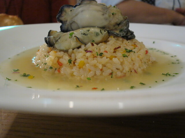 牡蠣出汁で炒めたバターライスに、牡蠣のスープでサラサラっとリゾット。