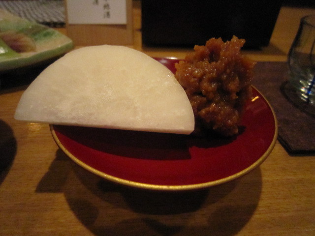 雲丹と、田舎味噌(赤味噌)を和えた物。