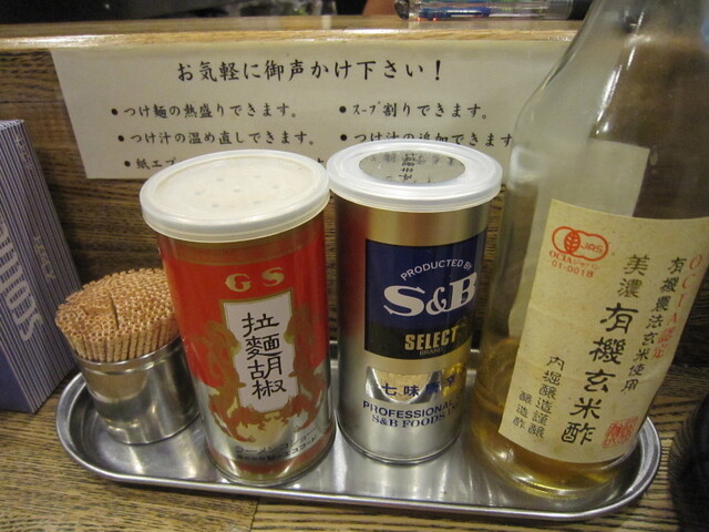 卓上調には『銀座篝』と同じく有機玄米酢が。