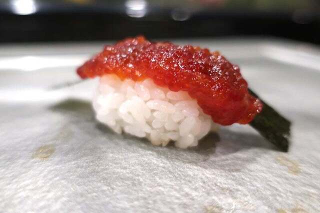 濃厚で、筋子の塩味としゃりの酢がこれほど合うとは。