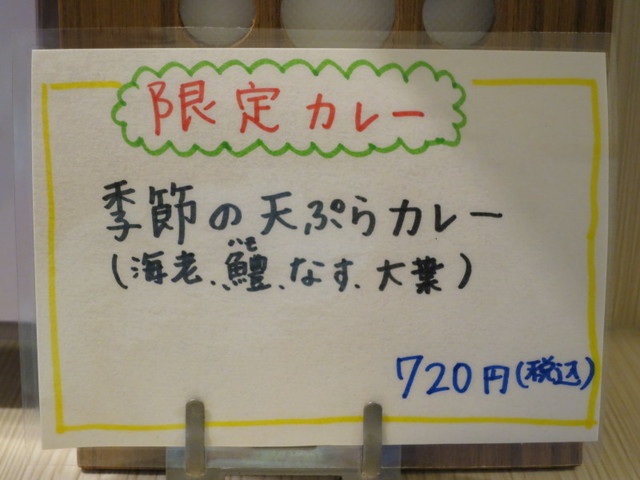 店頭に、「季節の天ぷらカレー」の限定メニューが出ていて。