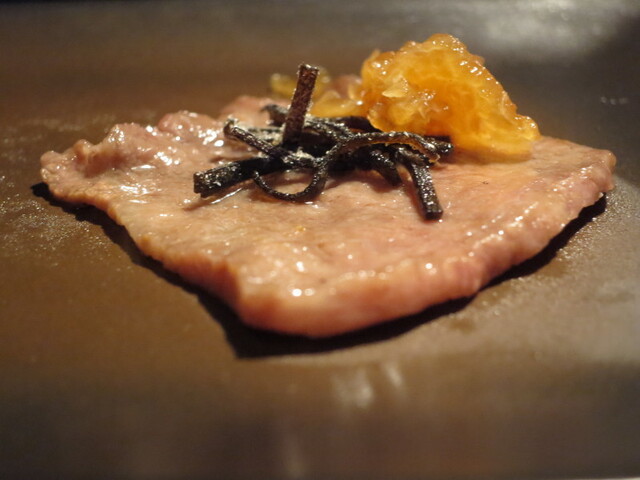 薄切りタンに塩昆布とおろしポン酢を乗せて。