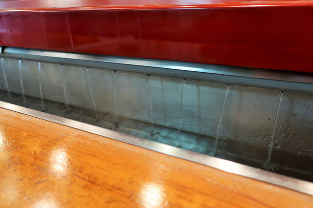 今も、カウンターテーブル前には手洗い用の水が流れ落ちていて。