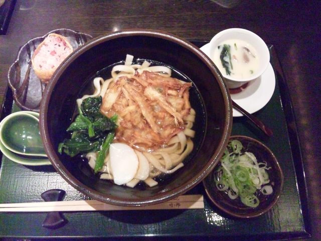 海老のかき揚げとほうれん草が良い具材が並んで全体的にまとまっています。