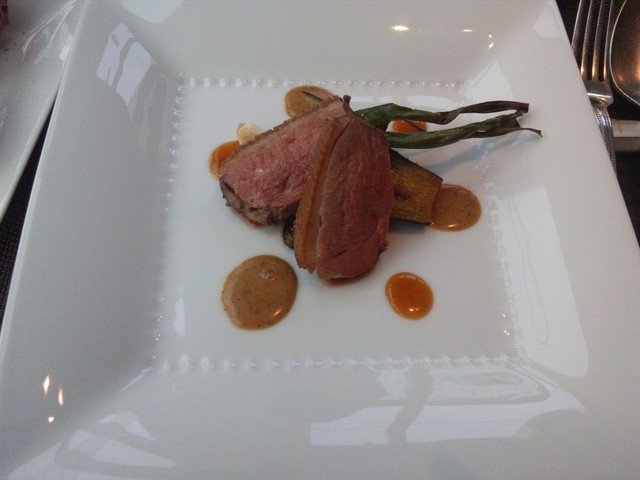 ⇒若干レア気味に焼かれたシャラン鴨肉は独自の味わいがある。